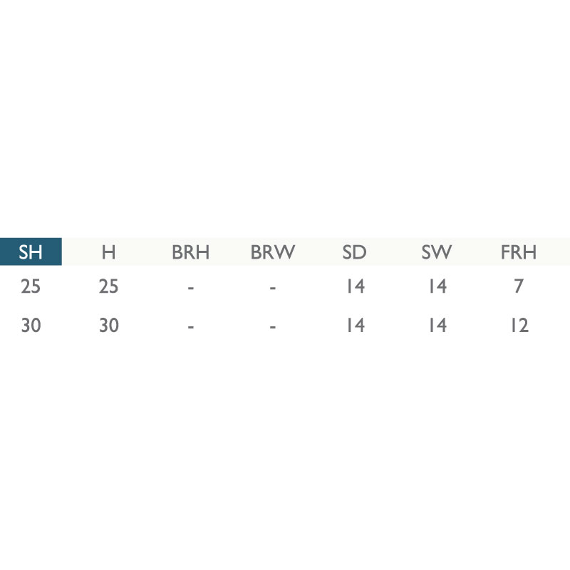 • Available heights: 25- and 30-inch